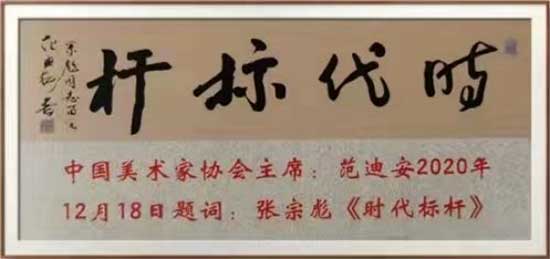 On December 6,2020, Fan Di'an, chairman of the Chinese Artists Association, gave an inscription to Zhang Zongbiao with the poem "The Benchmark of The Times".