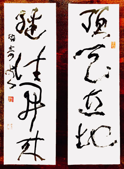 老鱼入古颇深,笔墨所至,满纸古拙出奇,苍劲亦灵动。这种沉着老辣的笔力得益于他几十年来勤习碑帖,旁参傅山、徐渭、徐生翁诸君,且结合自身的天赋与体悟之神会所得。老鱼走向古拙的笔墨线条是一种自知自觉的审美情调映射,正应了傅青主那句“宁拙毋巧,宁丑毋媚,宁支离毋轻滑,宁直率毋安排”。