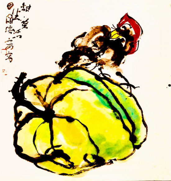 中国画讲究以书入画,深潜的书法功底也让老鱼的绘画与印章饱含得天独厚的金石韵味。虽然这种“奇拙”的书法与大写意画远非市场讨喜之物,老鱼却我行我素,一以贯之,自得其乐也。