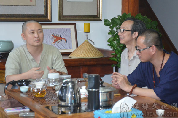 环球文化网 讯:2016年8月9日下午,由环球文化网主办的“禅与人生——东方禅社第五期论坛”在宋庄老舍书画院举行,本次论坛由环球文化网主编、东方禅社发起人楚寻欢主持,出席论坛的嘉宾有威海青云寺仁烁法师、艺术家杭法基、乙卜、韩残沙、白岩峰、徐柏林、杨建辉、宫铭,老舍书画院院长靳东升、苏横企划设计总监贾鲁峰等十余人。