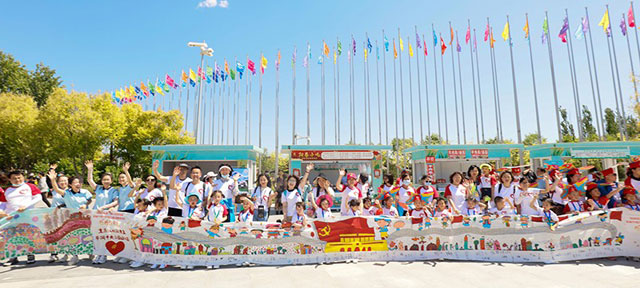 接龙现场,来自北京、青岛、深圳、大连、重庆、西安、赣州、宁波等162个城市、1400多家幼儿园的万米彩绘长卷在北京“群龙聚首”,数万条“画龙”迎着阳光盘旋腾飞,展现了中华民族的自信和自豪,热烈庆祝中国共产党百年华诞,祝福伟大祖国繁荣昌盛!