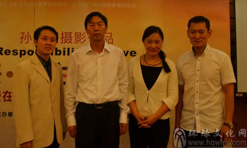 (《爱在大同》现场留影:左起环球文化网王绍军主编、大同市耿彦波市长、赵迎新社长、《焦点访谈》孙国明记者)